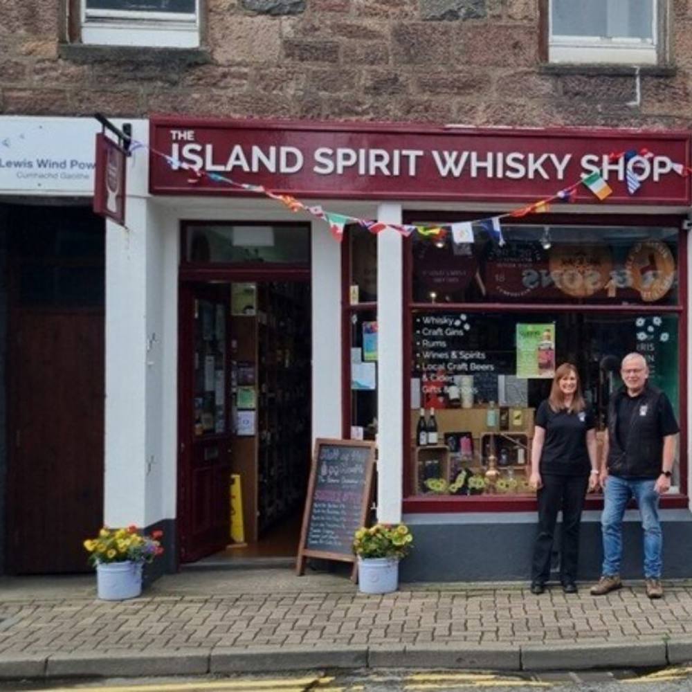 The Island Spirit Whisky Shop was incorporated in 2017 and, following a lot of background work and research carried out by husband-and-wife team Iain and Mary Faller, the shop was opened in the centre of Stornoway in 2020.